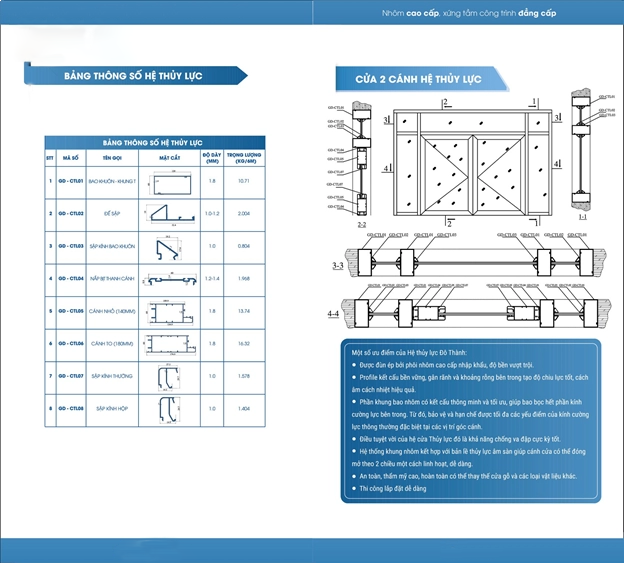 Bản vẽ kỹ thuật cửa nhôm thủy lực